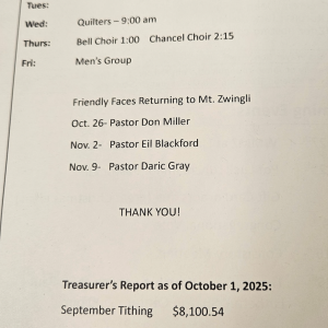 Weekly Bulletin for Mt. Zwingli Church
